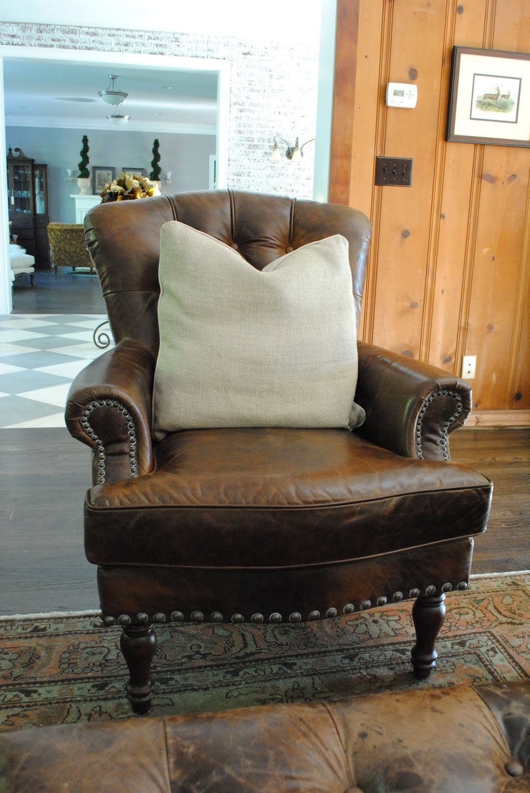 | One of two leather armchairs I fell in love with at first sight. They followed me home and now live in front of our family room fireplace. |